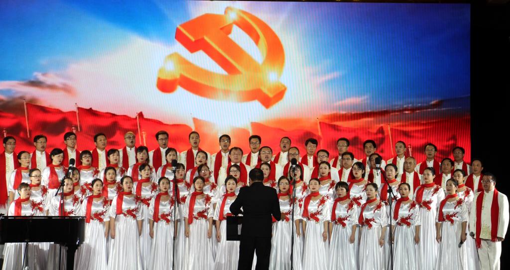 全体职工选用两首红歌述说新中国的光辉历史。