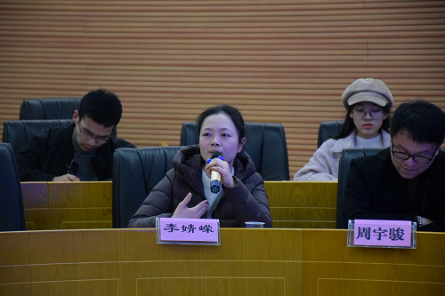 李婧嵘、周宇骏、欧扬等老师一一对杜教授的演讲进行点评。诸位评论人肯定了主讲报告史料价值大、论证严谨、推理有力、语言通俗易懂等方面优点,也从不同的角度提出了自己的商榷意见。如宋大琦副教授从“老子之道”、“庄子之道”、“儒家之道”等方面重新梳理了“道”的概念;黄守愚高度赞同中国古代法律之祖不是蚩尤而是伏羲,但道如何转换为法需要探讨;彭中礼教授提出,中国与西方的法律建构基础有很大的差别,中国究竟如何重建自己的“道”,推翻法理学提倡道法学需要更充分的证据表示疑问。李婧嵘老师探讨了我国立法、司法应如何重建道统以及传统儒家文学能否适应现代生活等问题。周宇俊老师认为,关于道与法的关系问题,“道”强调认知上的合规律性,而法律更强调基于认知和实践基础上的合规律性。欧扬老师提到,关于法律移植问题,我们既不能全盘西化,也不能主张全盘复古,如何把儒家法律文化与现代生活结合起来仍值得进一步探究。蒋海松老师提出道是中国古代思想最高的核心概念,很难通过一场讲座说清,“道”作为一种价值文化值得肯定,但在今天已经很难成为有效的制度建构资源,而且在古代其意义也不能拔高。杜教授随后就以上问题给予回应。