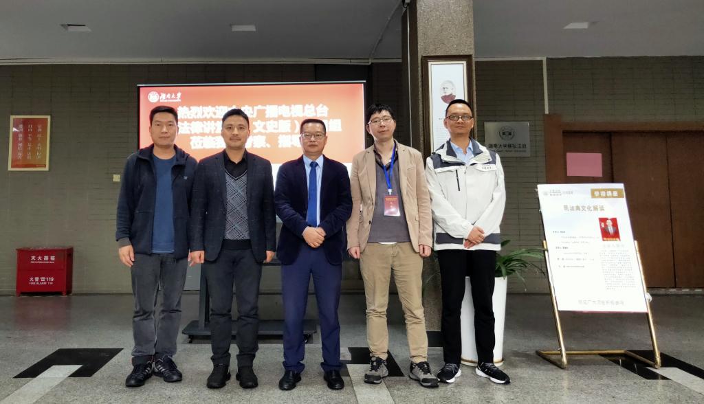 蒋海松老师之前参与策划和主讲《年话民法典》节目,陈德鸿先生代表栏目组对五楼自拍
