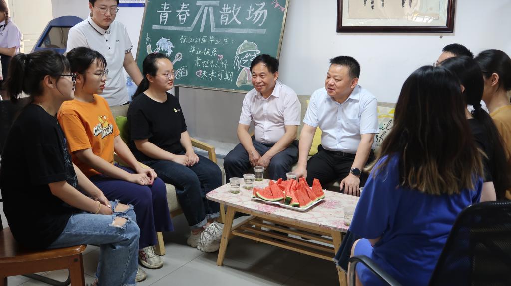 毕业生代表在交谈中也表达了对母校的感激和眷恋之情,汇报了对未来的规划与憧憬,纷纷表示要秉持五楼自拍