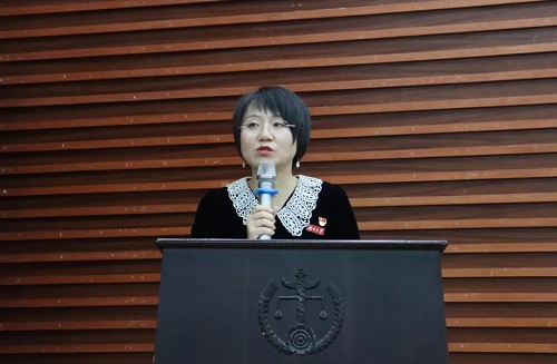 党委副书记、纪委书记罗英老师致大会开幕辞,她向参加本次大会的各位学生代表、研究生代表表示热烈欢迎、对全体与会同学致以亲切的问候。她对五楼自拍