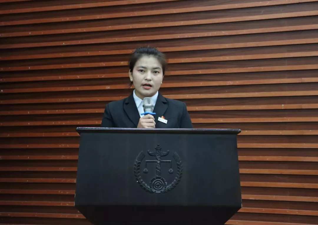 (团委委员候选人阿丽米热·卡得尔发表竞选演讲)