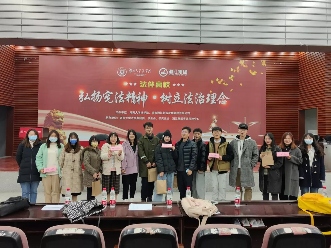 本次活动不仅加强了同学们对宪法的认知,深入学习贯彻习近平法治理念,提升法治意识,增强责任感和使命感。同时,联合湘江集团企业,打造了五楼自拍