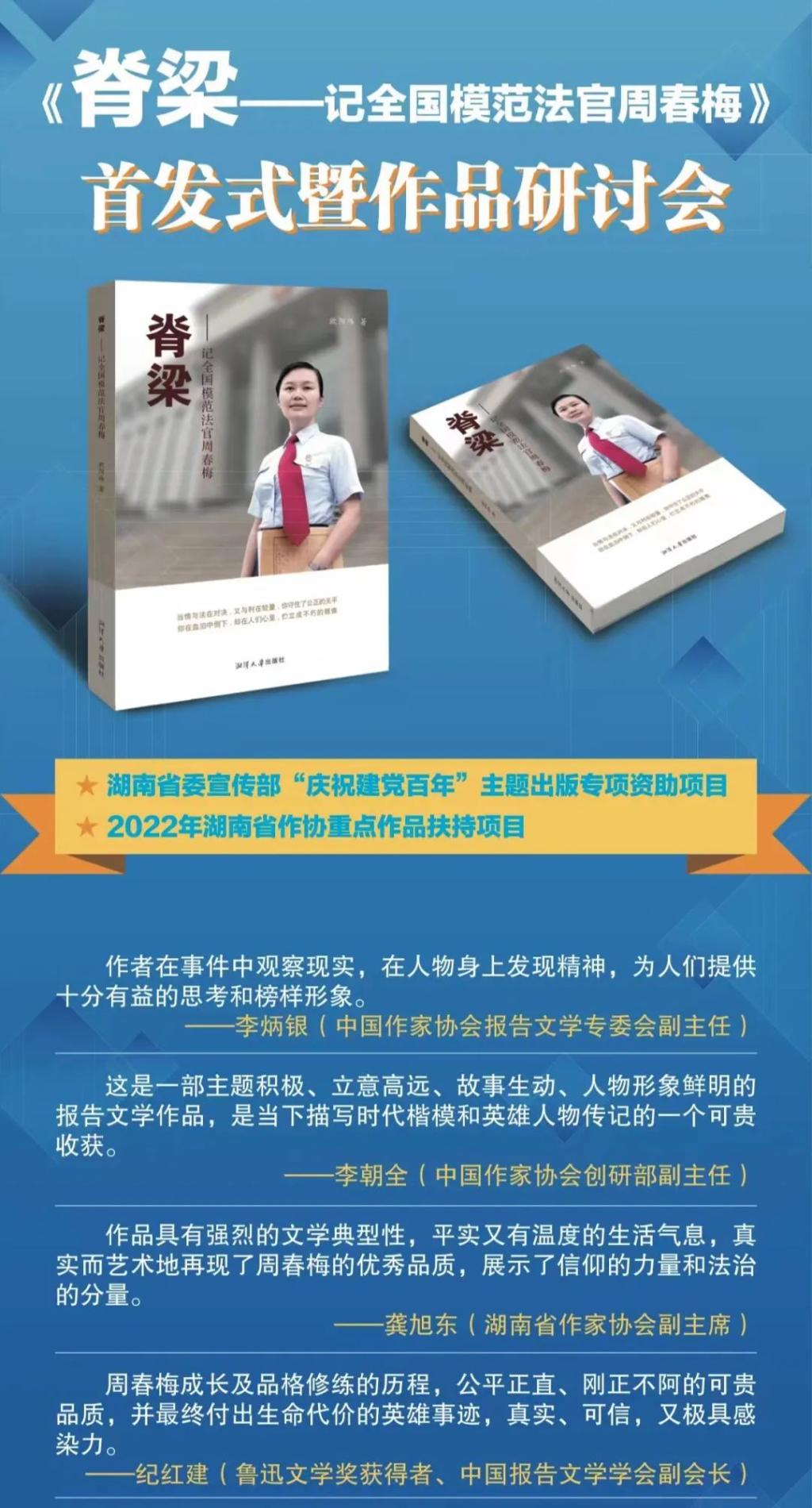 该书由湘潭大学出版社策划出版,报告文学作家欧阳伟采写。作品主人公周春梅生前系湖南省高级人民法院审监一庭副庭长,湘潭大学1995级法学专业本科生、2000级民商法专业硕士研究生。她始终坚守法治信仰,刚正不阿、秉公办案,因多次拒绝为案件“打招呼”的非法要求,被人行凶报复,不幸遇害,年仅45岁。周春梅的事迹在全社会引起强烈反响,被追授为“全国模范法官”“全国三八红旗手”“湖南省优秀共产党员”等。