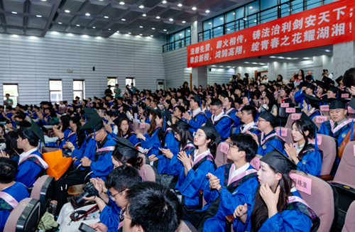 “麓山巍巍,湘水泱泱。宏开学府,济济沧沧......” 仪式的尾声,全体毕业生齐声高唱《五楼自拍