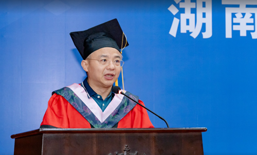 学位授予仪式上,院长黎四奇教授以 “尽量做一个会独立思考的人” 为题发表毕业致辞。在毕业季心灵鸡汤泛滥之际,独立思考作为 “人” 的本质属性更需被重视。他从法律研习中 “人” 的概念切入,结合笛卡尔 “我思故我在”、帕斯卡尔 “会思考的苇草” 等哲思,强调数智时代算法通过 “个性化推荐” 打造的电子信息茧房正威胁个体认知独立,人若沦为资本与技术的奴隶,便失去了 “人” 的本质。他进而提出独立思考的实践路径:学会独处以在孤独中磨砺意志、回归自我,坚持阅读以书籍滋养灵魂、构建精神家园,保有 “适度不知情权” 以拒绝碎片化信息侵蚀、守护理性思辨。此外,他援引托尔斯泰、约翰・多恩等思想家的观点,强调独立思考不仅是对自我存在的确证,更是对他人与社会的责任担当,法律人需以仁爱之心践行 “诚实生活、不加害他人” 的理念,在信息洪流中通过独立思考确证 “人” 的尊严,既成为自己灵魂的主宰,也成为照亮世界的微光。最后,院长以罗曼・罗兰的名言作结:“在数智洪流中做独立思考的人,是认清生活真相后的英雄主义。” 愿诸君以书籍为舟、以思辨为桨,在信息迷雾中坚守理性之光,既做自我灵魂的掌舵者,亦做照亮他人的提灯人。如此,方不负 “法律人” 的初心,方不辱 “独立思考者” 的担当。