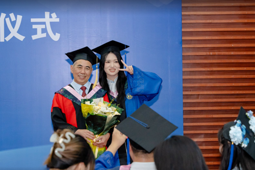 师恩难忘,鲜花寄情。学位授予仪式后,毕业生代表依次向老师们和辅导员献上鲜花,感谢他们多年来的谆谆教诲与悉心陪伴。