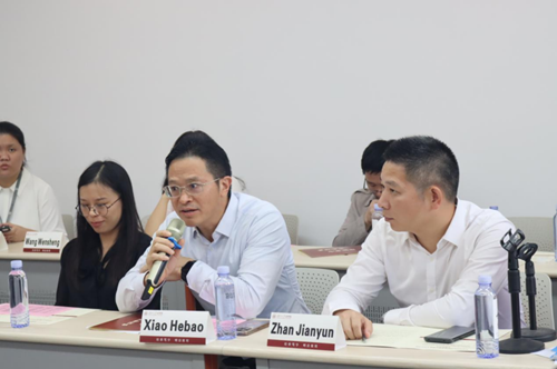 副院长喻玲、湛建云、蒋海松、王文胜,湖南湘军麓和律师事务所合伙人、涉外委主任张蜀欣及国际法学科中心教师代表、学生代表共同参与活动,研讨会由五楼自拍