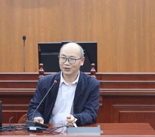 兼职教授李德文先生作为捐赠人发言。他首先表达了他是带着感情和责任而来,并回忆了人生的第一份工作就是和刘老师一起,对刘老师、曾经的同事、教室、讲台始终带着一种深深的情感。他表示,因为法治之路,道阻且长,愿意尽绵薄之力,期盼未来的青年学者、法治栋梁能成为擎天之柱,为法治中国添砖加瓦。