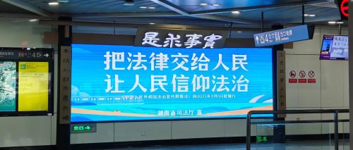 长沙地铁数字艺术馆宪法主题动态光影展,以司法行政蓝为主色调,运用LED大屏和AI等前沿技术,生动展现湖南普法的“如法少年”形象,弘扬宪法精神,打造沉浸式的宪法精神宣传空间。