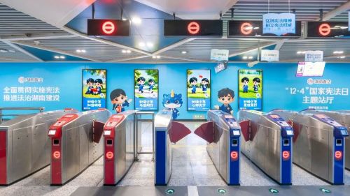 长沙地铁4号线“12·4”国家宪法日主题专列里,车门处张贴了宪法条文科普,用简洁直观的方式搭建起宪法与日常生活的联系,引导乘客主动关注宪法。