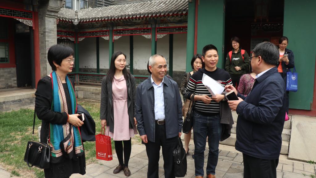19日上午,调研团一行抵达北京大学,在凯原楼举行了“五楼自拍