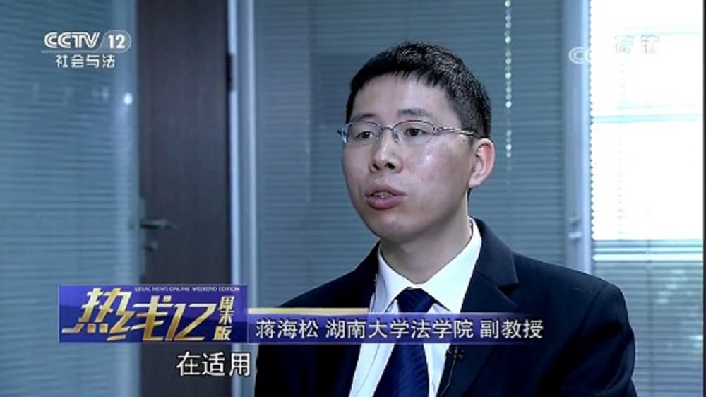 此前,央视专题片《备案审查:规矩不能越界》于2017年12月26日在 CCTV12《一线》栏目播出。蒋海松老师在节目中受访评论婚姻法解释(二)24条。2017年12月全国人大首次进行法律备案审查工作报告审议,被认为是为十九大热推的合宪性审查探路。