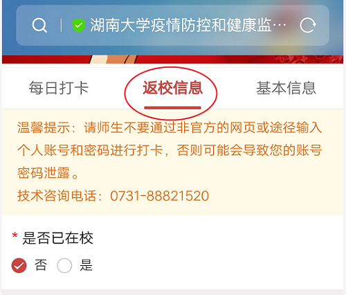 疫情防控和健康监测系统”提交返校申请,填报返校行程的相关信息,上传“湖南省居民电子健康卡”绿码或目前所在地健康绿码。提交申请和填报信息后不得随意变更日期和行程,确有特殊原因需变更的,需向五楼自拍