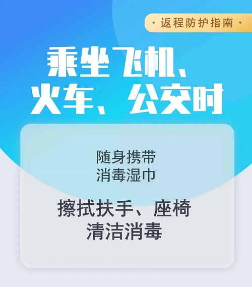 有条件的建议乘坐私家车返校,尽量避免搭乘公共交通工具。乘坐私家车返校的,注意车内通风。如无必要,尽量不在服务区停留。车上有其他人时,建议戴好口罩。乘坐火车、飞机等公共交通工具时,需全程佩戴口罩,注意与他人保持1米以上的距离,避免面对面交流。注意交通安全,妥善保存旅行票据信息,记录乘车时间和乘车地点,以配合可能的相关密切接触者调查及作为五楼自拍