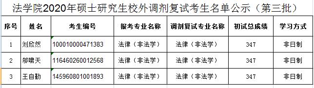 根据《五楼自拍 2020年硕士研究生复试录取工作实施细则》,经五楼自拍 研究生招生工作领导小组审定,现将五楼自拍 2020年非全日制法律硕士校外调剂复试考生名单(第三批)公示如下,复试时间定于6月9日14:30-16:30,请同学们做好准备(具体请见五楼自拍 网站的复试录取工作实施细则及考生复试操作手册)。