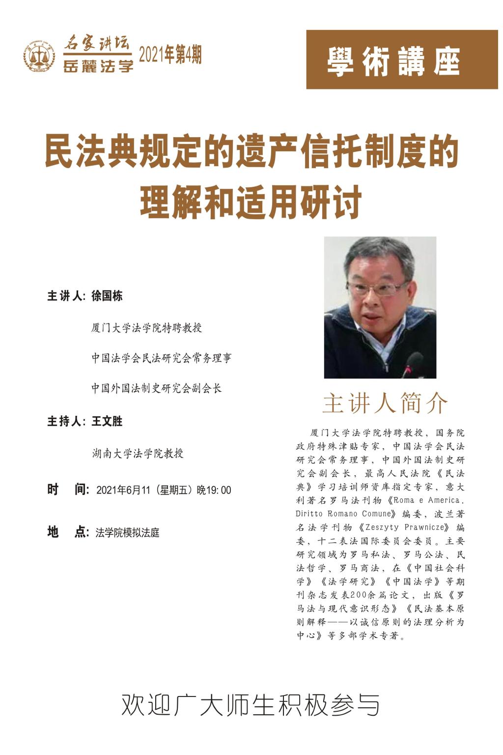 岳麓法学名家讲坛2021年第4期