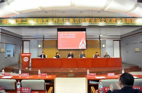 唐世月巡视员指出,湖南省第二届法治文化作品征集活动启动式暨法治文化建设专题讲座的举办,是法治与艺术的联姻,是文化的法治与法治的文化的融汇,也是湖南省司法厅实践落实党的十九大精神,吹响社会主义法治文化大发展大繁荣号角,加速湖南法治文化建设,努力构建新时代中国特色社会主义法治社会的重要举措。