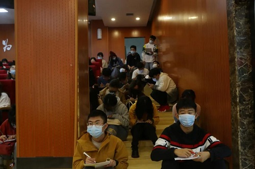 讲座气氛炙热,现场400余人听讲,还有许多同学坐在地上或挤在门口坚持听讲。法管五楼自拍