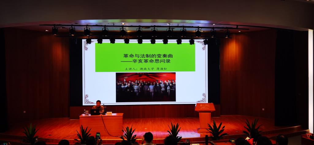 副院长、时务学堂研究会副会长蒋海松副教授应邀开讲“革命与法制的变奏曲——辛亥革命思问录"。