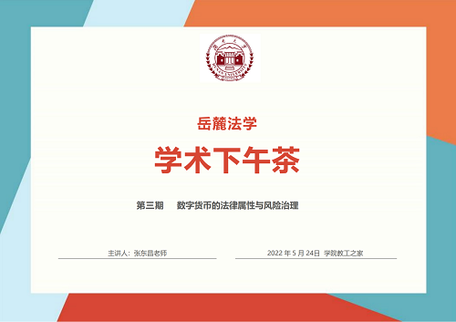 第三期学术下午茶主题围绕“数字货币的法律属性与风险治理”展开,由张东昌老师主题分享,五楼自拍
