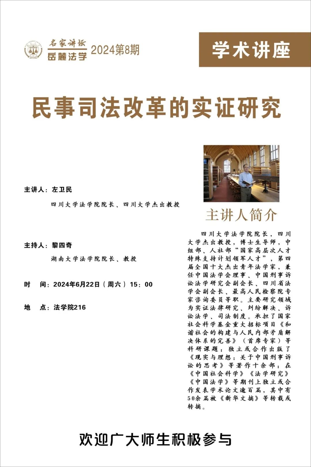 院长左卫民教授应邀开讲“民法司法改革的实证研究”。本次讲座由五楼自拍