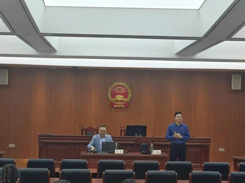 师生到场参加,现场气氛热烈。 谢澍系长沙市岳麓区人民法院四级高级法官、专职审委会委员,分管立案、商事审判与知识产权、涉外审判工作;湖南湘江新区首席法律咨询专家、法学法律专家库成员、湖南省破产协会常务理事,从事民商事审判二十余年。审判执行中代表性工作:全国首例债转股(2003年)、湖南省首例公司风险对赌案件(2018年)、推出全省首家破产府院联动机制、主持湘江新区营商环境填报工作(全国第六名);《供应链金融新业态下涉合同与票据请求权合并诉讼形态的规则构建——兼谈通过诉讼模式调规范和引导新业态》获全国法院第三十四届学术讨论会二等奖,全省一等奖。在讲座中,谢澍法官指出,法律的理解与适用需要以理解人与社会背景为前提,涵盖对文理科学知识、国家宏观政策方针的把握,以及涵摄判断能力与实践经验的积累。此次讲座为广大法学生明确了在校学习的方向,激励着他们不断充实自我,迎接未来的挑战。
