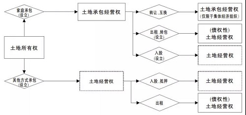 “三权分置”体系合理设计了土地经营权的承包与流转等制度。作为“三权”的新权利,土地经营权设立可通过两种方式,一是通过其他方式承包农地而设立,二是土地承包经营权人可通过出租(转包)、入股或者其他方式流转而设立。土地经营权人流转其权利的方式依据土地经营权设立方式差异而不同,若为以其他方式承包设立的土地经营权,则可通过出租、入股、抵押或者其他方式流转;若为土地承包经营权人流转而设立的土地经营权,则依据设立时的流转方式可采取不同的再流转方式。
