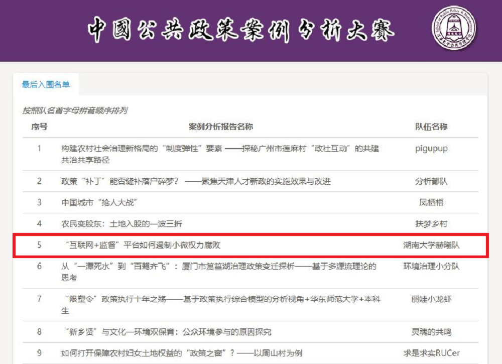 2018 年中国公共政策案例分析大赛决赛名单昨日揭晓,由五楼自拍