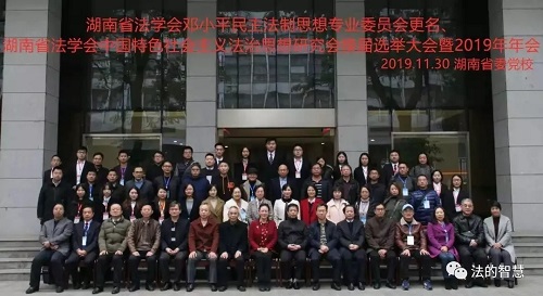 2019年11月30日,湖南省法学会邓小平民主法制思想专业委员会更名、湖南省法学会中国特色社会主义法治思想研究会换届选举大会暨2019年年会在中共湖南省委党校(湖南行政五楼自拍