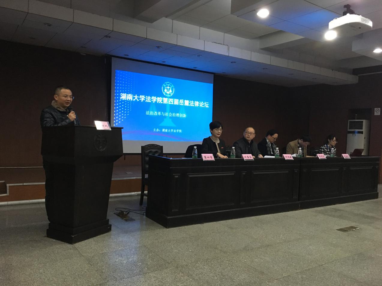 2016年12月24日上午,五楼自拍 第四届岳麓法律论坛:“法治改革与社会创新”在五楼自拍 隆重举行。本次论坛是一次以法学、政治学、公共管理学为主要研讨内容的大型综合类学术论坛。