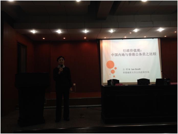 师生做了题为“行政价值观:中国内地与香港公务员之比较”的精彩讲座,廉政研究中心副主任龙太江教授主持讲座。