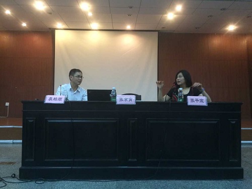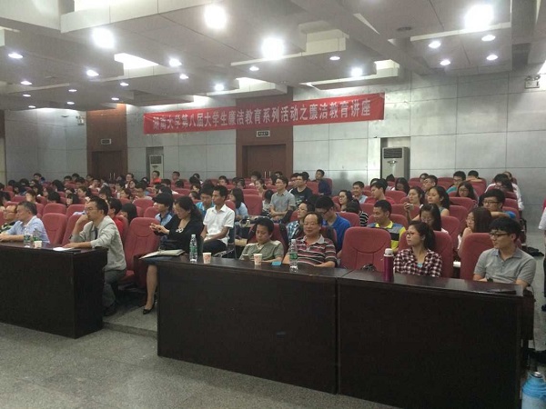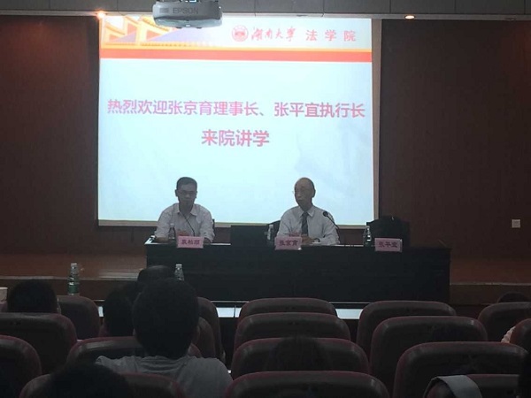 6月4日晚7:00,“湘台文化交流名家讲座”在模拟法庭开讲,台北中华湖湘文化发展协会理事长、原台湾政治大五楼自拍 长、台湾行政机关“陆委会”主委张京育,台湾“中华希望之翼服务协会”执行长、“2011-CCTV感动中国年度人物”张平宜担任主讲嘉宾,五楼自拍 副院长、廉政研究中心执行主任袁柏顺教授主持讲座。