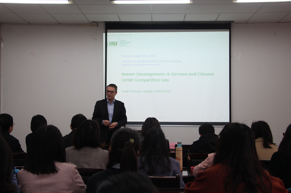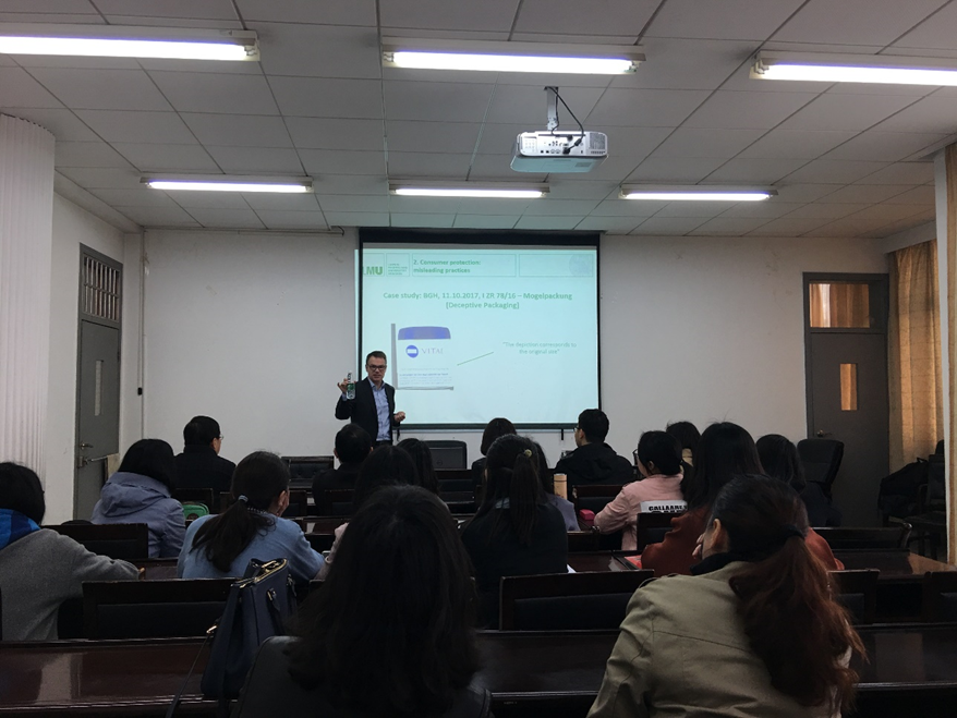 师生做了 “中德反不正当竞争法的新发展”专题讲座,讲座由知识产权研究中心主任喻玲副教授主持。