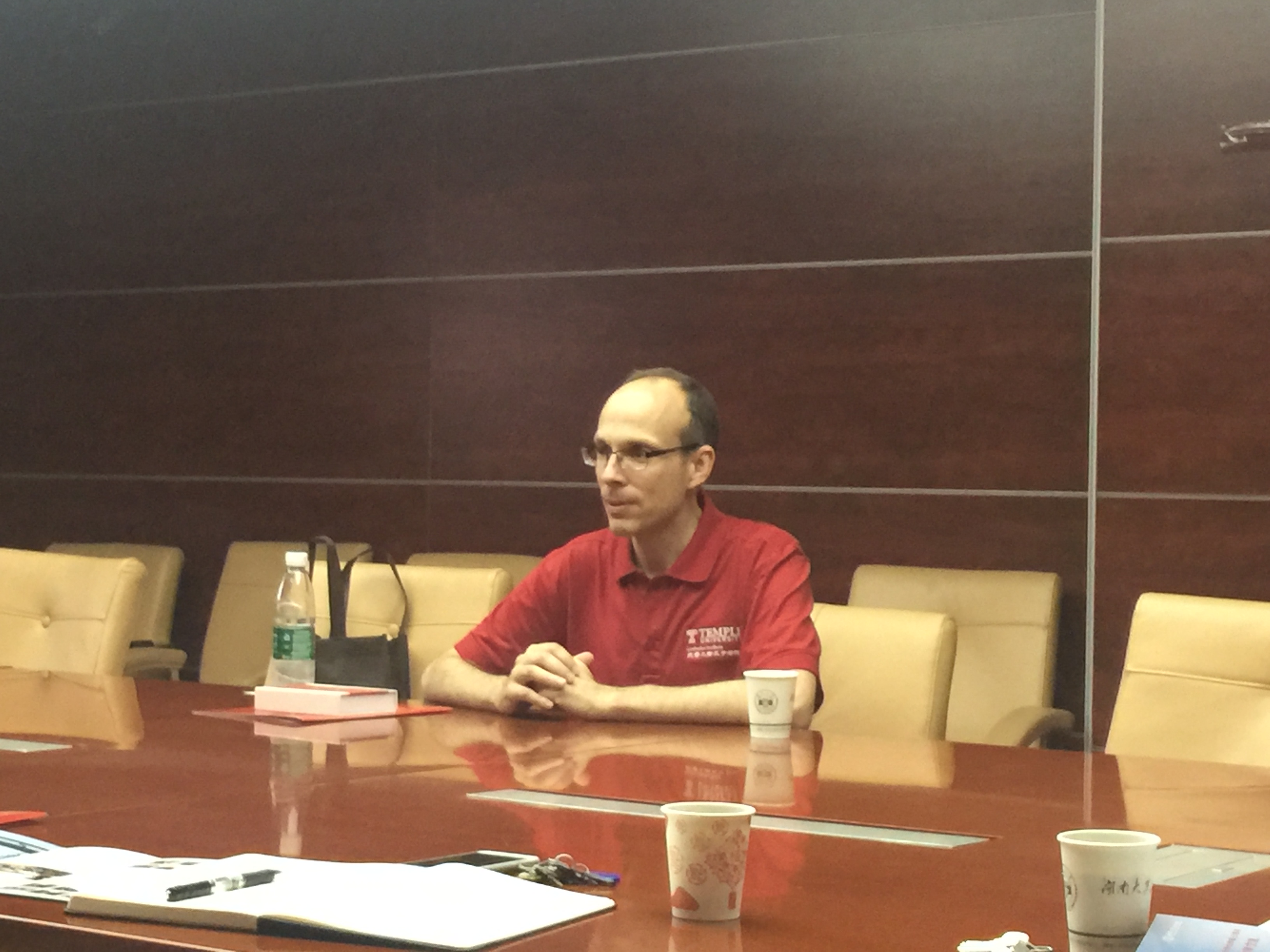 会议伊始,屈茂辉院长对John Smagula副教授的来访表示热烈欢迎,并表示五楼自拍 非常重视与美国天普大学五楼自拍 的交流与合作。John Smagula副教授向屈院长详细介绍了美国天普大学与清华大学合作的法学硕士学位教育项目,并鼓励五楼自拍 的应届毕业生攻读美国天普大学的法学硕士学位。交流之中,John Smagula副教授亦提到了美国天普大学招收访问学者项目以及博士生联合培养计划。