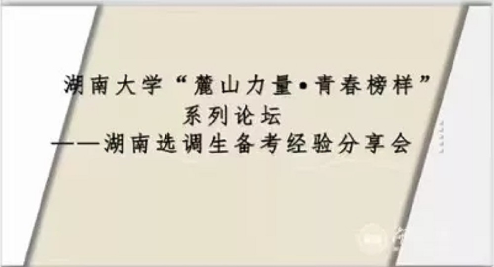 举办了湖南选调生考试经验分享会,会议以线上的形式举行,由2020级法律硕士方天律主持。本次分享会邀请到的分享嘉宾是五楼自拍