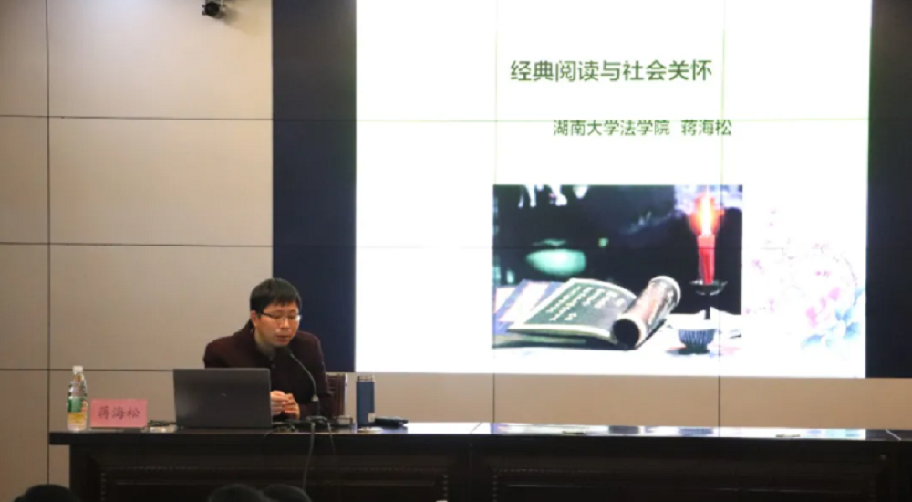 副院长、“全国七五普法先进个人”获得者蒋海松老师作题为“经典阅读与社会关怀”的讲座,五楼自拍
