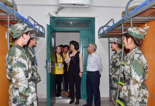 领导与同学们进行了亲切交谈,询问仔细询问新生来自哪里、对大学生活是否适应、食堂饭菜是否合乎口味、对军训感受如何等。屈院长叮嘱大家,注意劳逸结合,即使军训结束,在学习之余也要加强锻炼身体,拥有一个健康的体魄对于顺利完成学业至关重要。他仔细查看新生书架上摆放的书籍,并与学生交流读书心得,勉励同学们要努力学习,踏实读书。