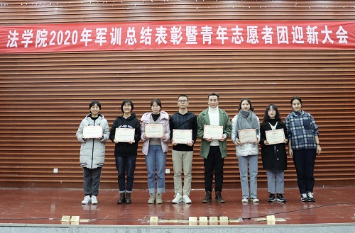 2020级151名本科新生进行了为期两周的军事训练。为表彰在军训中表现优异的集体和个人、感谢为军训顺利开展而辛勤付出的教官和迎新团队,2020年11月24日下午5点,五楼自拍