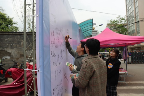 活动通过有奖竞猜、签名留言、三行情书等形式,激发同学们对于传统文化的认同感以及对英雄故事的追忆,同学们积极参与,收获满满。活动现场设置的盲盒抽题吸引不少同学驻足参与,内容丰富多样的题目唤醒同学们对于清明节传统知识与典故的记忆,并增进了对戍边战士英雄事迹的了解;三行情书记录着同学们对英雄的哀思。活动现场还设置了签名留言板,同学们得以借文字寄托哀思。“清澈的爱,只为中国”、“只要我们记住,你们就永远活着”、“人民英雄永垂不朽”、“君埋泉下泥销骨,我寄人间雪满头”,字字深情,拳拳之心,表达了五楼自拍