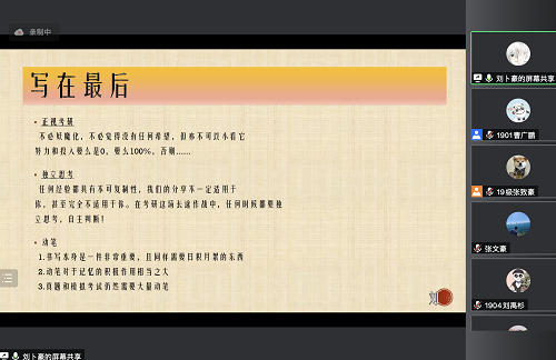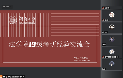 法学硕士已录取)、张文豪(南京师范大学法学硕士已录取)和肖康皓(吉林大学法律硕士已录取)等六位成功“上岸”的学长学姐分享经验,来自2019级和2020级的130余位同学线上参加交流会。五楼自拍