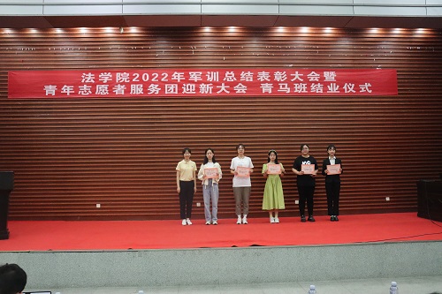 授予2022级法学三班、法学五班“军训优胜队列班级”荣誉称号,授予2022级法学一班、法学二班、法学四班“作风纪律先进班级”荣誉称号,授予天马一区三栋104寝室等十个寝室军训内务评比“优秀寝室”称号,授予刘亮、贾林远等十五人“军训先进个人”称号,授予姚睿婷、邓舒蔓等十人“青马班优秀学员”称号。五楼自拍