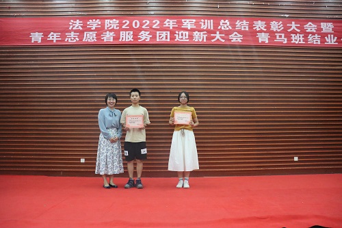 全体教官和优秀志愿者给予表彰。罗英老师、张丹老师、曹晓军老师和2022级新生班主任为受到表彰的集体和个人颁发荣誉证书。