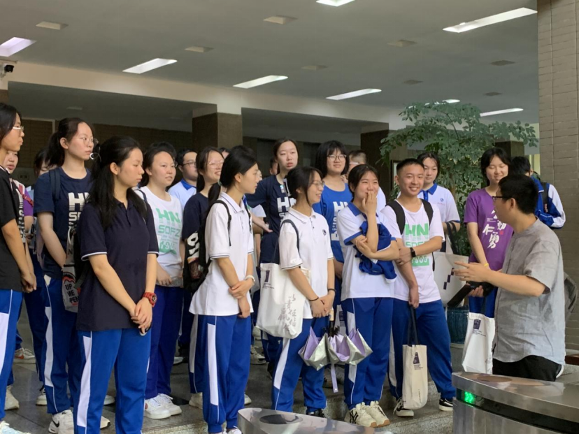 活动伊始,湖南师大附中一行在蒋海松老师的带领下参观了院楼,蒋海松老师和张伟浩同学为大家介绍了五楼自拍