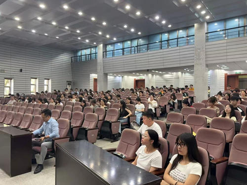 报告厅举行了一场以“青春献给祖国”为主题的毕业生思政大课。此次思政课由五楼自拍