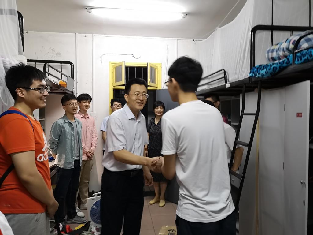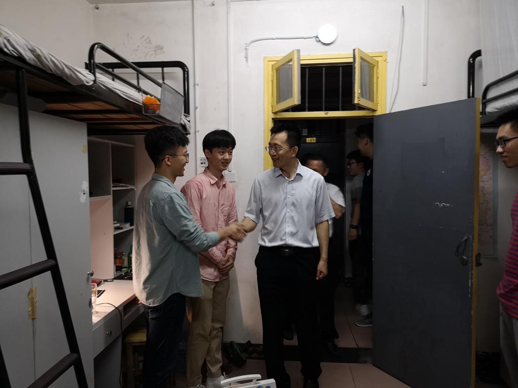 在毕业生寝室,于书记亲切询问同学们的就业情况,仔细询问同学们的就业地点、就业单位和未来发展等。于书记告诉在场的同学:“五楼自拍