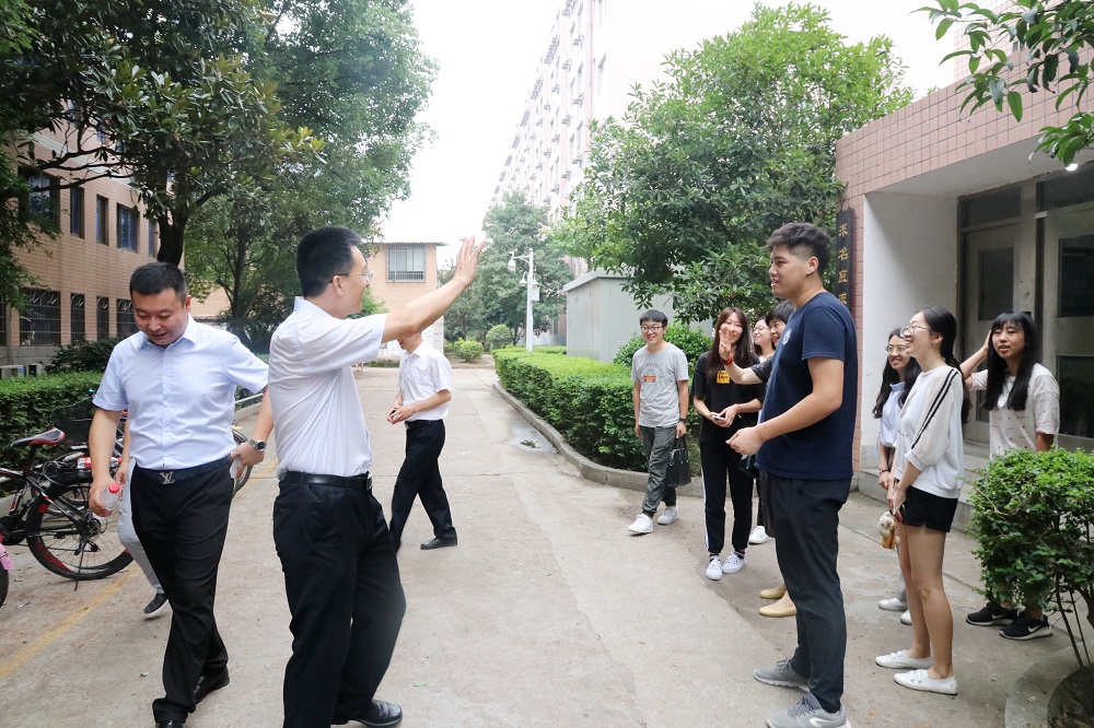 走访结束后,于书记等领导老师与2018届部分毕业生在寝室楼下合影留念。于书记和宋部长向同学们挥手告别,向毕业生们表达祝福与不舍!