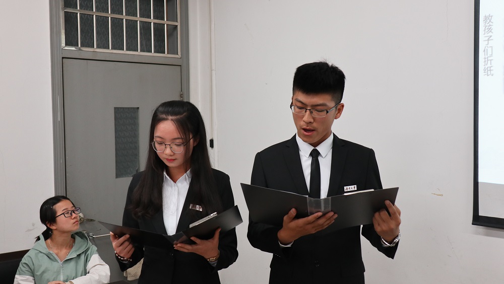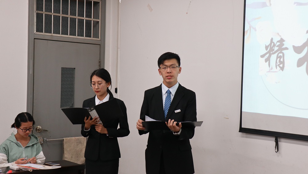 在主持人为答辩小组介绍过本次答辩的规则后,“最佳主题团日活动”候选班级首先进行答辩展示。法学1701、1704、1705班以及行政管理1702班从支部概况、活动内容、活动目的等方面入手,通过别具特色的PPT形式介绍了进入大学以来班级团支部的建设状况。参观省博、游览橘子洲、义卖明信片、医院志愿行……各个班级围绕不同的团日主题展示了非富多彩的活动内容和青年团员朝气蓬勃、紧跟党走的青春活力。在各个班级进行完答辩后,主席团成员针对每班答辩的内容及形式进行点评,并对不足之处提出修改建议。