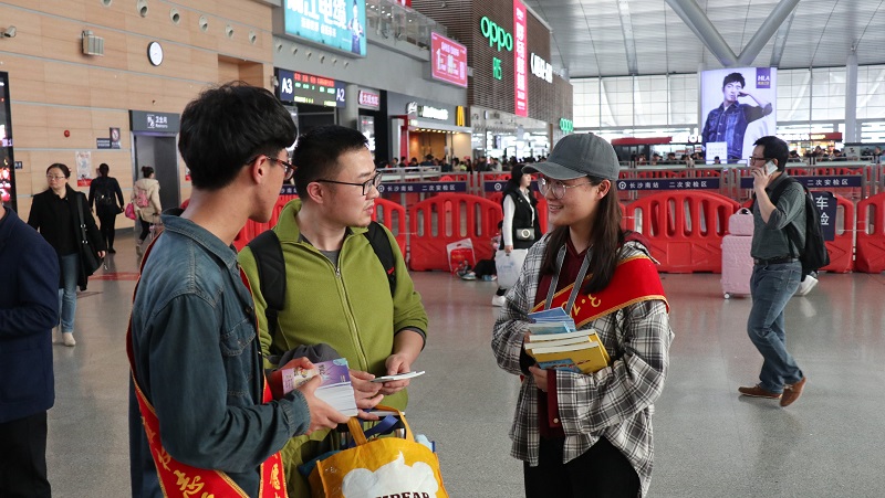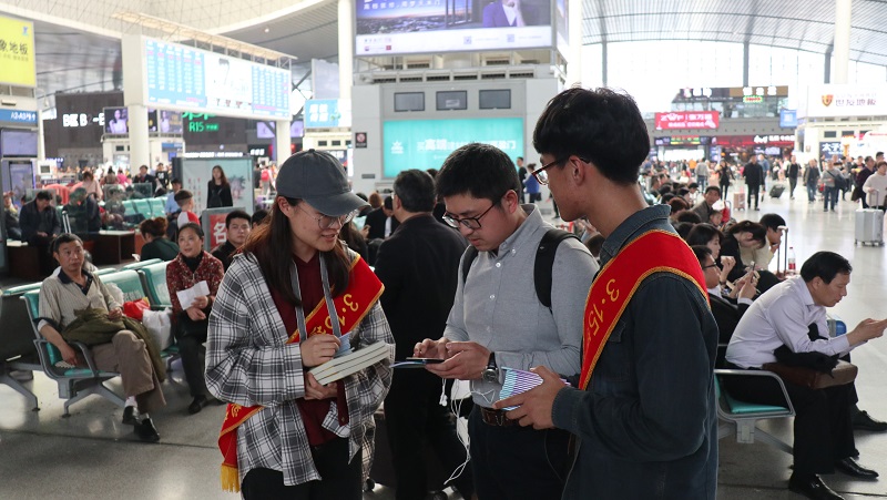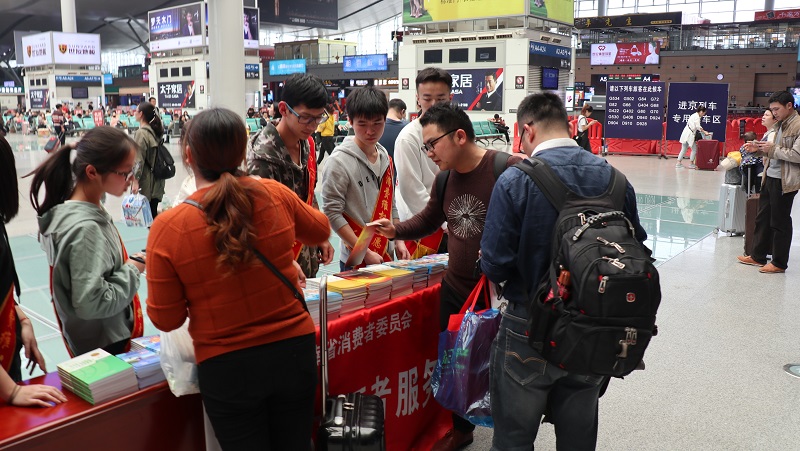 在高铁站工作人员的支持下,志愿者们还走进候车大厅向旅客讲解如何在消费过程中保护自身权益的实用知识。“我们在日常生活中遇到的维权问题实在是太多了,以前外出就餐时发现店家卫生不合格或者是有欺客行为时,我只会忍气吞声,现在我知道该拿起法律武器来维护自己的正当权益,”正在候车的王女士说道,并对此次普法活动表示了由衷地感谢。