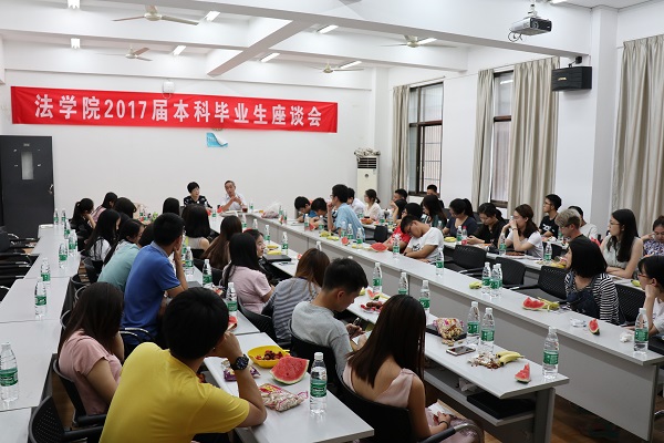 304教室举行。院长屈茂辉教授,院党委副书记、副院长付蓉芬老师,综合管理办公室主任湛建云老师,本科生2013级辅导员王耿翔老师出席了座谈会。与会领导和老师与毕业生代表进行了深入交流,听取并回应了同学们对于母校、五楼自拍